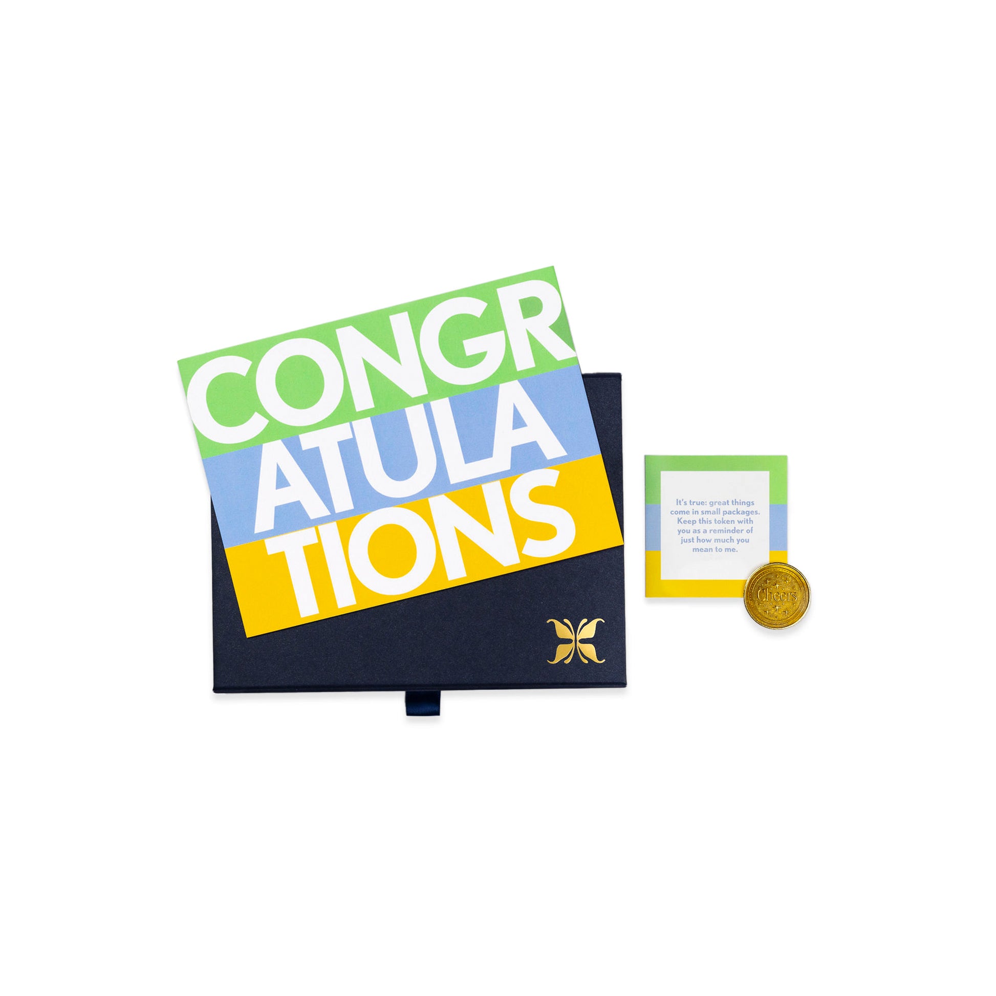 Each Token Moment includes a heavyweight flat greeting card with a vibrant full-color design and a brass-plated steel sentiment token, all housed in a magnetic gift box. It’s the perfect option for recognizing the universal, everyday moments or sending “just because.”