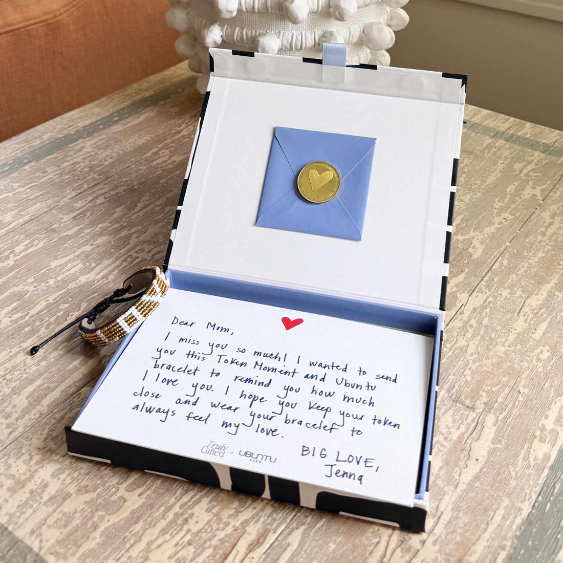 Now more than ever, small gestures of love have a big impact. This collaboration brings together our signature handwritten Token Moments and Ubuntu Life's handmade bracelets, offering tangible reminders of the meaningful relationships that make life special.